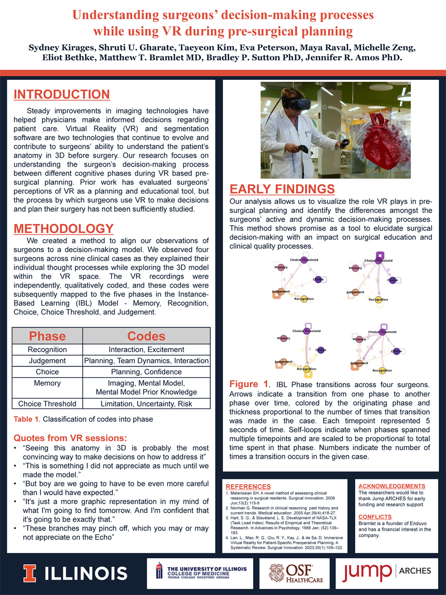 Steady improvements in imaging technologies have helped physicians make informed decisions regarding patient care. Virtual Reality (VR) and segmentation software are two technologies that continue to evolve and contribute to surgeons’ ability to understand the patient’s anatomy in 3D before surgery. Our research focuses on understanding the surgeon’s decision-making process while using VR during pre-surgical planning. Prior work has evaluated surgeons’ perceptions of VR as a planning and educational tool, but the process by which surgeons use VR to make decisions and plan their surgery has not been sufficiently studied. To this end, we created a method to align our observations of surgeons to a decision-making model. We observed four surgeons across nine clinical cases as they explained their individual thought processes while exploring the 3D model within the VR space. The VR recordings were independently, qualitatively coded, and these codes were subsequently mapped to the five phases in the Instance-Based Learning (IBL) Model - Memory, Recognition, Choice, Choice Threshold, and Judgement. Our analysis allows us to visualise the role VR plays in pre-surgical planning and identify the differences amongst the surgeons’ active and dynamic decision-making processes. This method shows promise as a tool to elucidate surgical decision-making with an impact on surgical education and clinical quality processes.