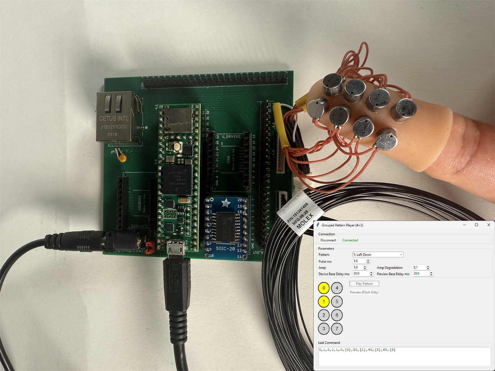 We demonstrate a high-density wearable array designed for spatially localized fingertip haptics. While Linear Resonant Actuator (LRA) arrays are common in large-area wearables, applying them to the fingertip is difficult. Standard continuous vibrations trigger broad-field mechanoreceptors, causing high-density inputs to blur into a single diffuse sensation. We showcase a grid of miniature LRAs driven by a specialized control method that produces discrete, localized ``taps." Attendees will wear the device to compare this localized actuation against standard vibration and test their ability to distinguish individual contact points on the fingertip.