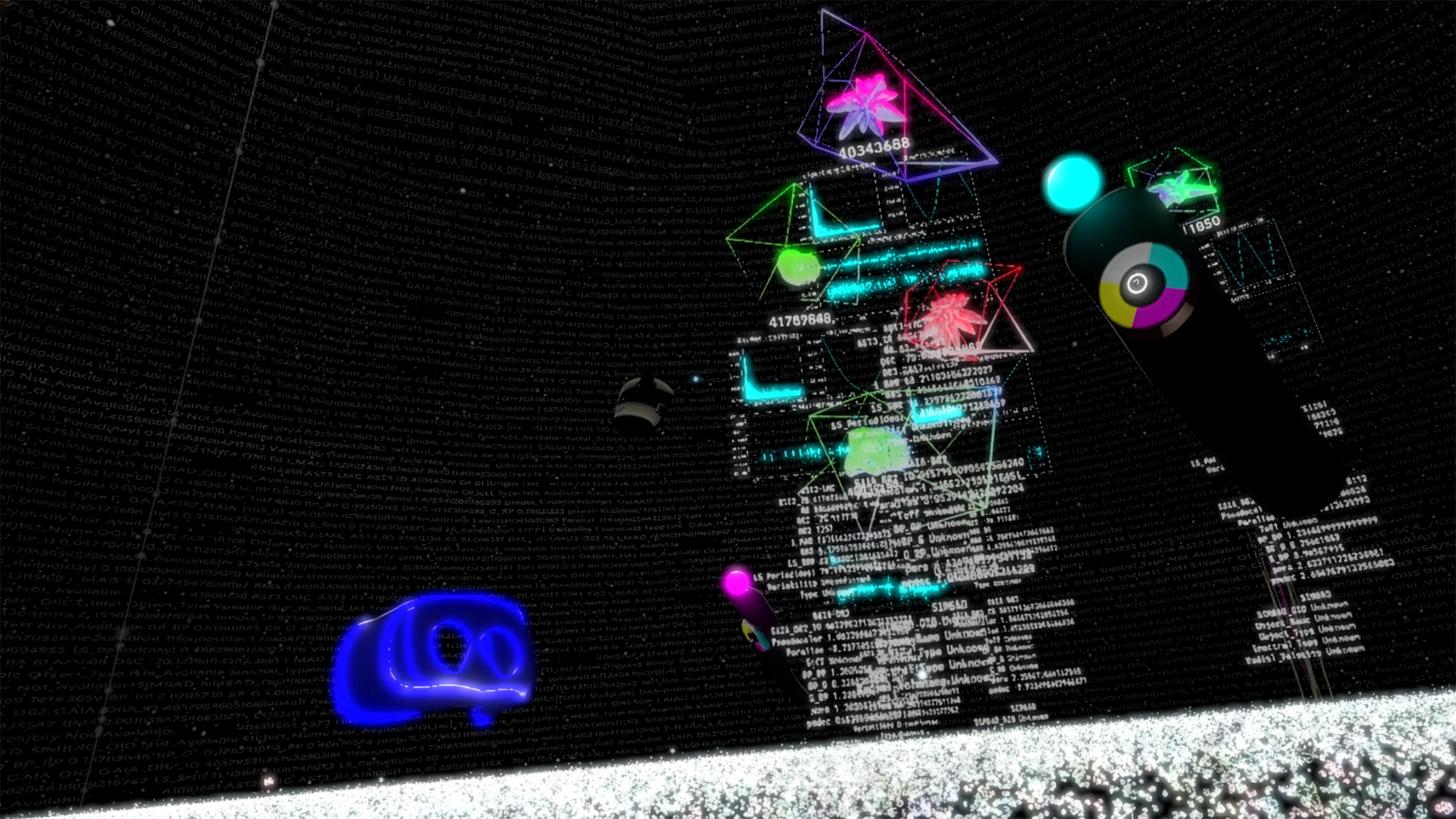 INSTRUMENT | One Antarctic Night (IOAN) is a multi-player VR experience that brings the rhythms of the cosmos to life in an endless remix instrument. Created from the starlight of 817‚373 stars reaching robotic telescopes in Antarctica, after a 160‚000 year journey, the experience transports players inside of a star field from the heart of the Large Magellanic Cloud. Inside this luminous space, multiple players explore and collaboratively create new visual and sound remixes from unique data about the stars.